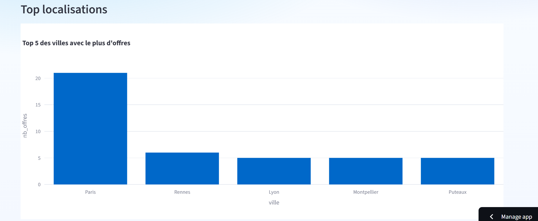 Identification des localisations les plus représentées via un classement des villes.
